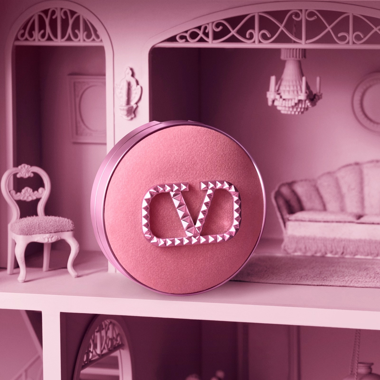 SERAM a conçu le décor du boitier de maquillage Go-Cushion Glow Velvet Mauve pour la Maison Valentino. Il se compose de l’emblématique logo V clouté de Valentino en plastique injecté, bouterollé sur une base textile velours.