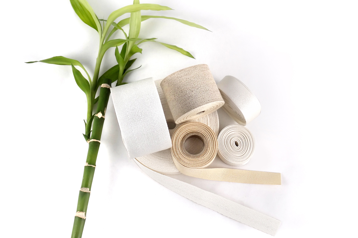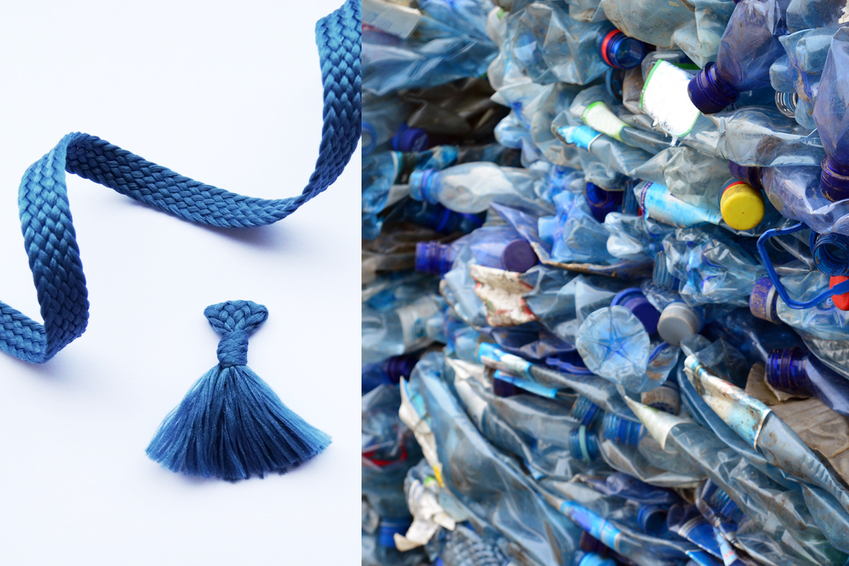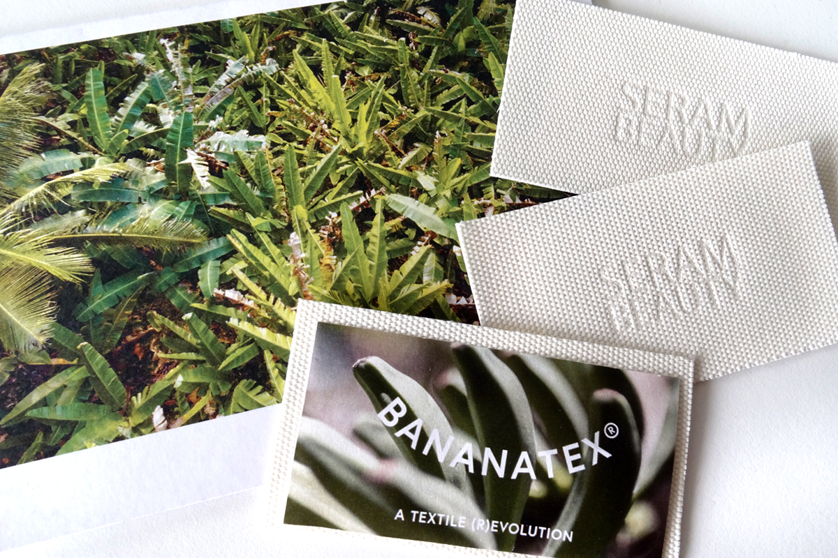 Rubans et étiquettes tissées issus du retraitement de bouteilles plastiques / PU à base de déchet de pomme / Textiles issus de feuilles d’ananas ou de tronc de bananiers / Cuir de saumons