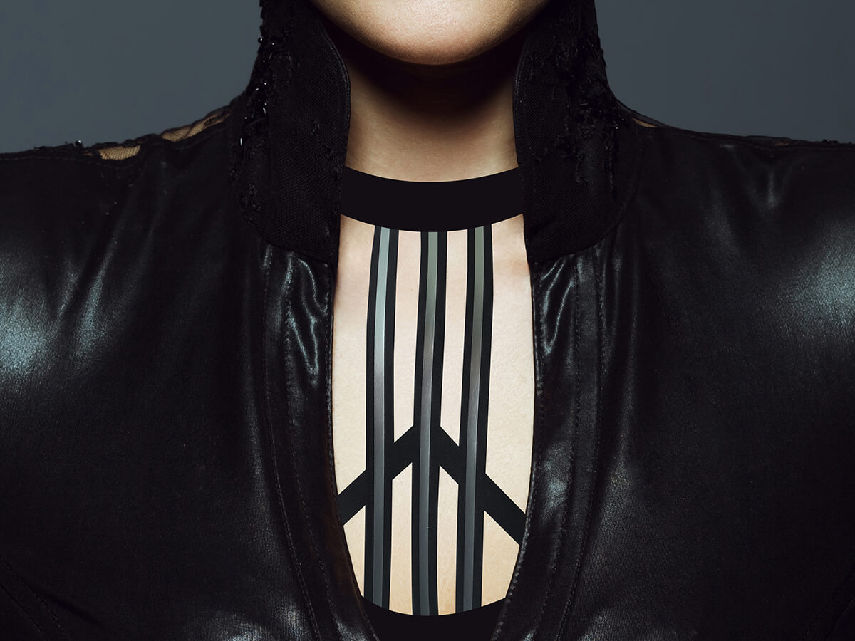 La tendance sport chic se découvre à travers un plastron en maille aux lignes structurales et nuancées,